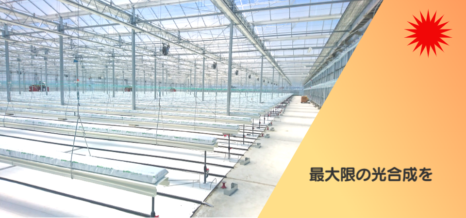 岡村農園では、トマト栽培の最先端であるオランダのシステムを導入し、甘さのもととなる、光を最大限取り込めるハウスを導入しています。