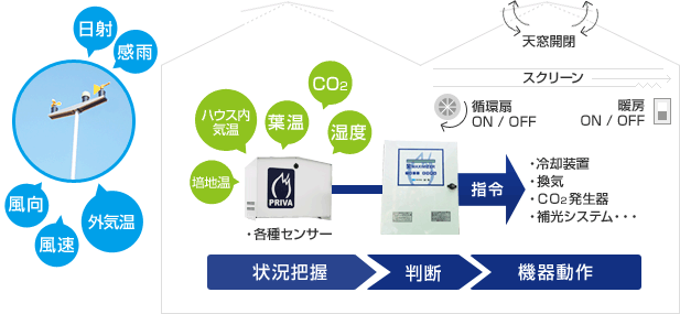 岡村農園では、トマト栽培の最先端であるオランダのコンピュータ装置を導入し、ハウス内環境を徹底的にコントロールしています。
