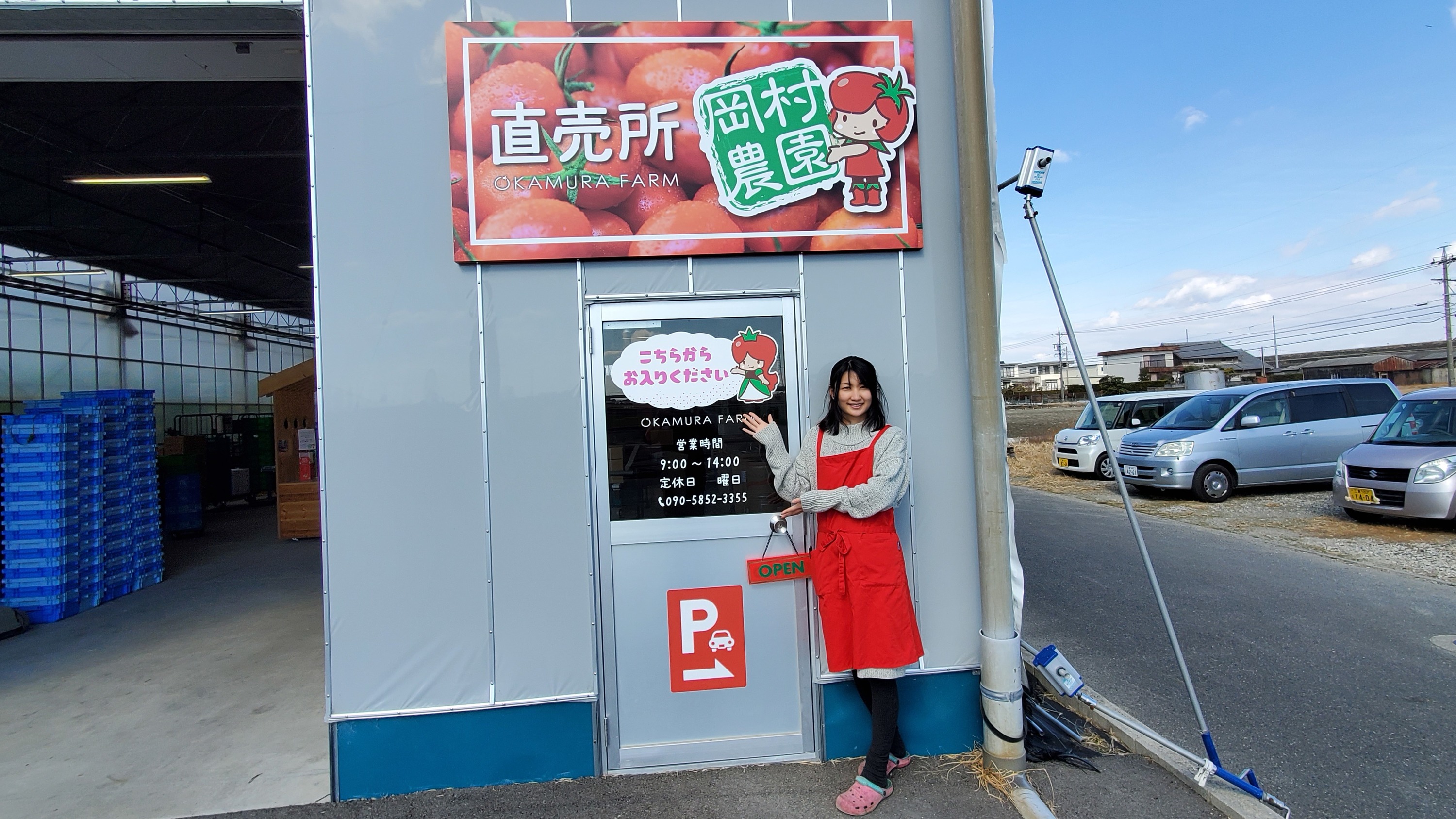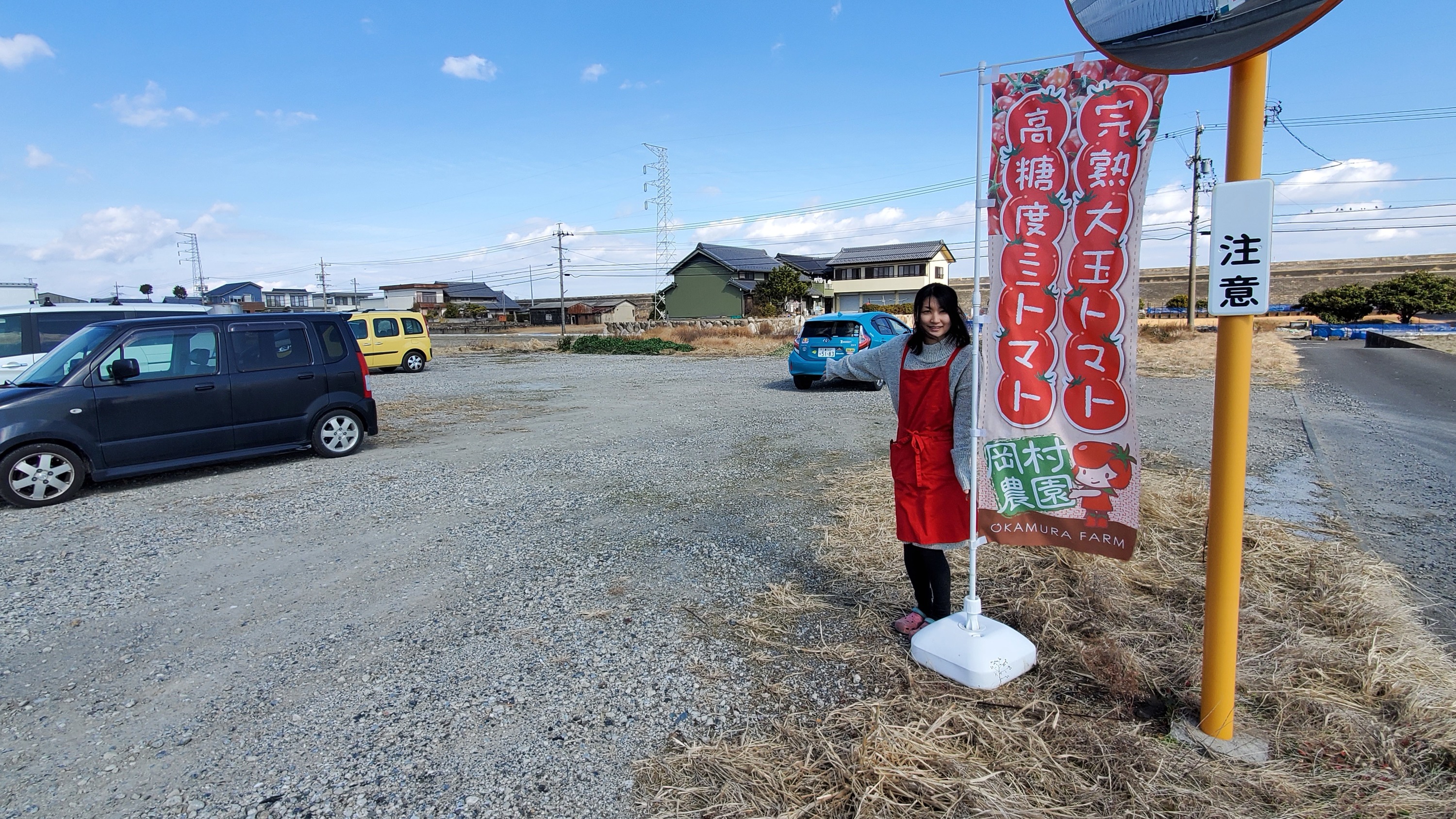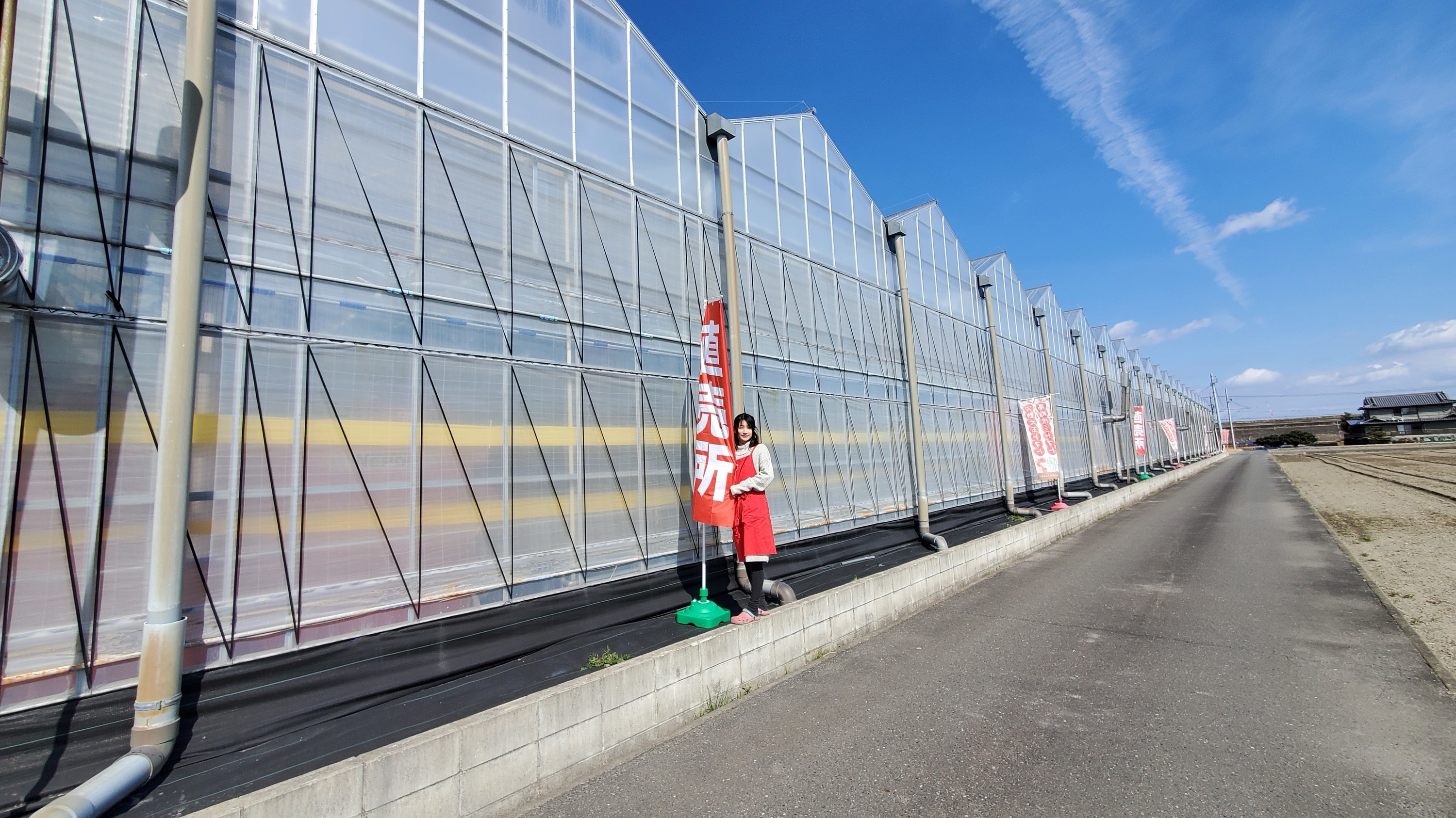 ↑看板のすぐそばにのぼりいっぱいのハウスがあります。